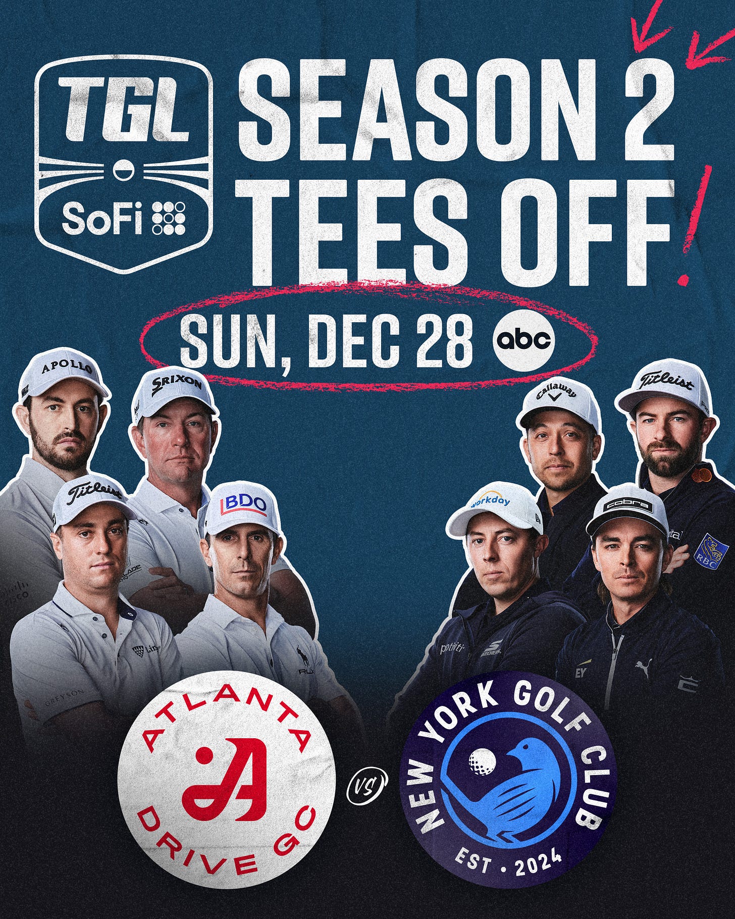 Las Vegas - TGL presented by SoFi will begin its second season with a championship rematch as Atlanta Drive Golf Club faces New York Golf Club on Sunday, December 28, at 3pm ET, marking the league’s broadcast debut on ABC.